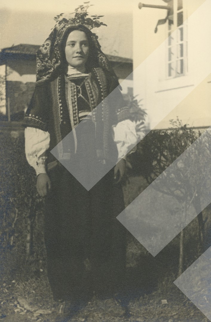 I panjohur, 1937, Vajzë me veshje tradicionale të Veriut, print në letër, 11 x 17 cm.