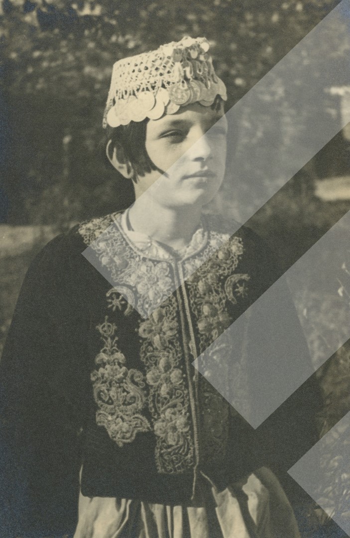 I panjohur, 1937, Vajzë nga Shqipëria e Mesme, print në letër, 11 x 17 cm.
