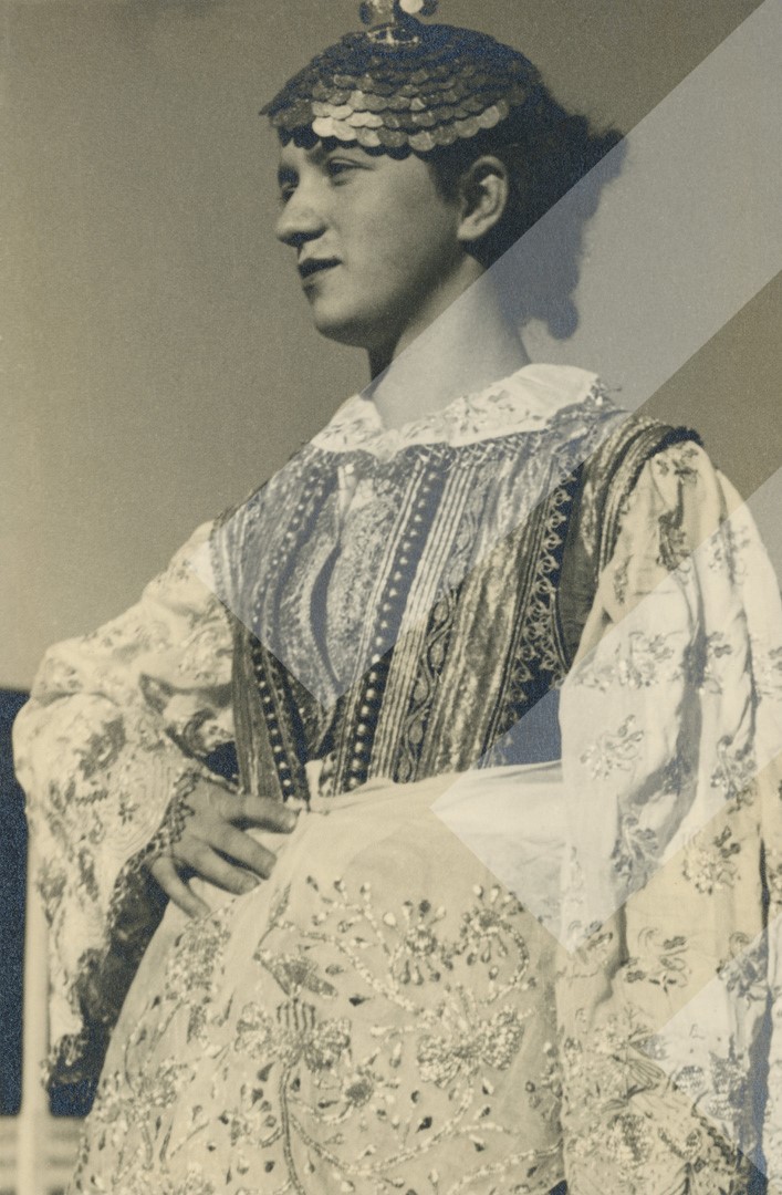 I panjohur, 1937, Vajzë me veshje tradicionale të Tiranës, print në letër, 11 x 17 cm.