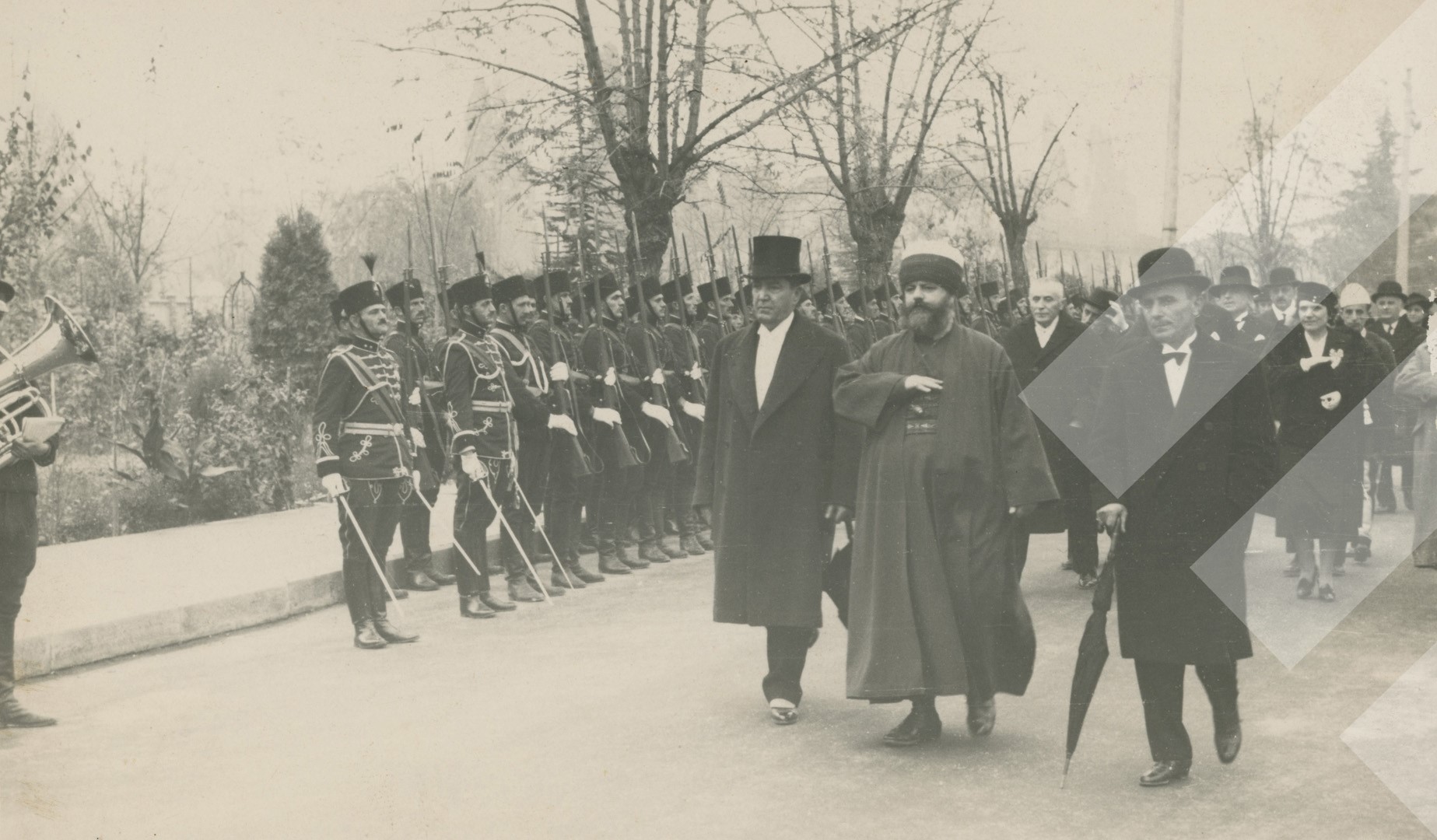 Kel Marubi, 1937, Një klerik bektashi duke përshëndetur me nderimin zogist në ceremoninë mbretërore të festimeve të 25 vjetorit të shpalljes së pavarsisë në Tiranë, print në letër, 9 x 14 cm.