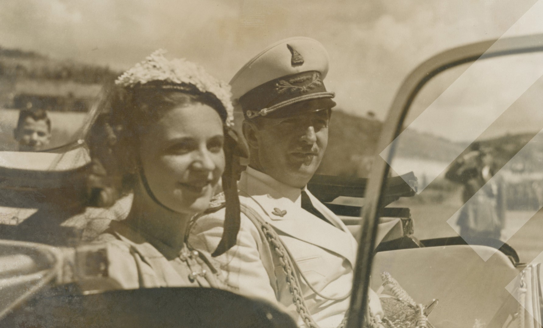 I panjohur, 1938, Çifti mbretëror në makinë, print në letër, 9 x 14 cm.