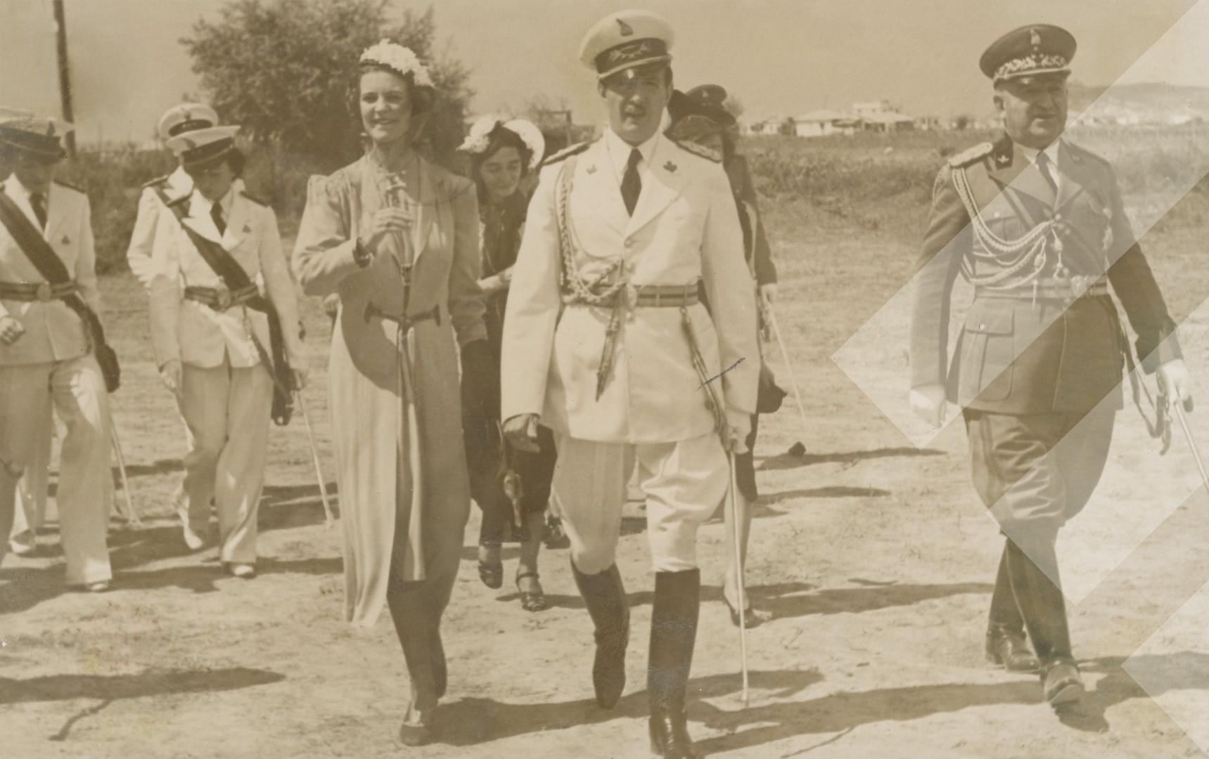 I panjohur, 1938, Çifti mbretëror dhe princeshat duke vajtur në një ceremoni shtetërore, print në letër, 9 x 14 cm.