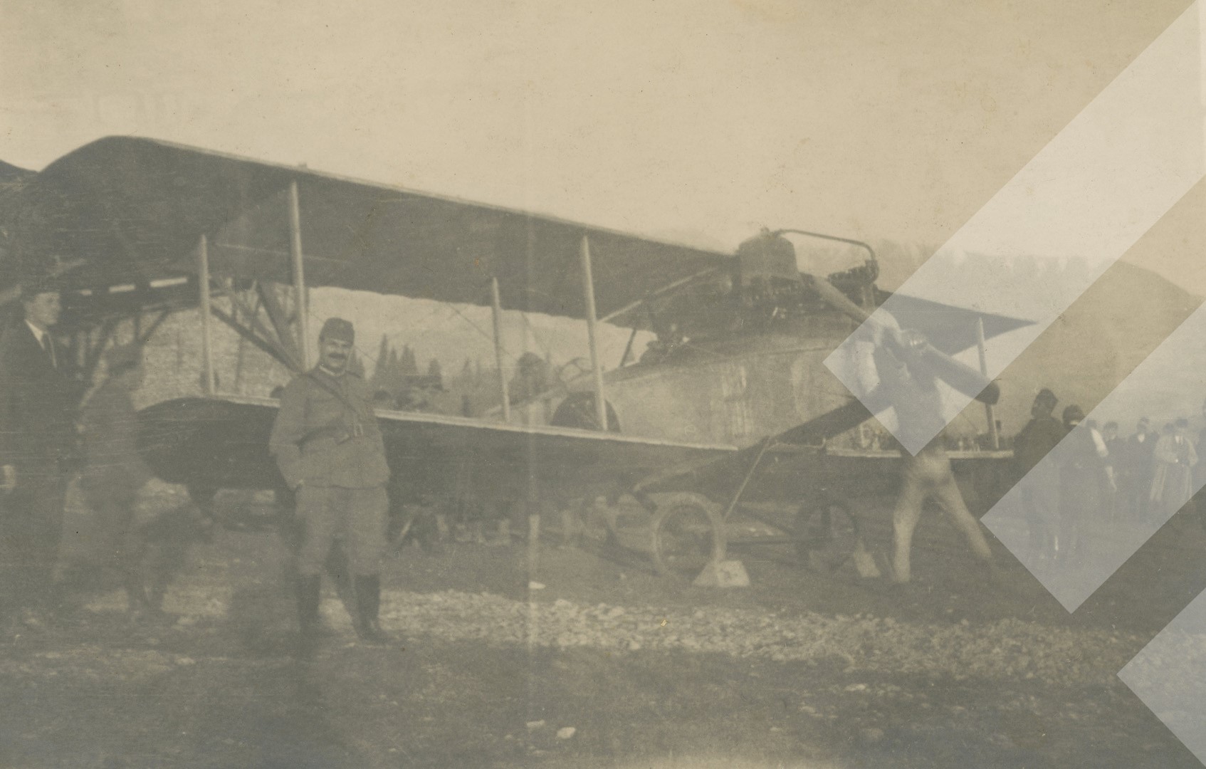 I panjohur, rreth 1930, Ndezja e një avioni të ushtrisë shqiptare, print në letër, 9 x 14 cm.