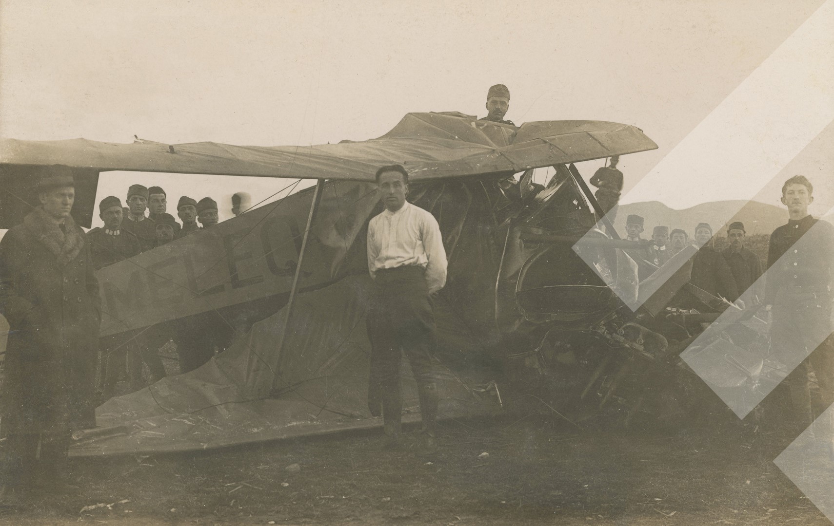 I panjohur, rreth 1930, Avion i dëmtuar i ushtrisë shqiptare, print në letër, 9 x 14 cm.