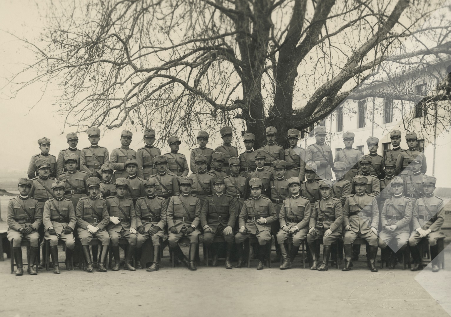 Otello Renzoni, rreth 1930-1935, Një grup oficerësh të ushtrisë shqiptare, print në letër, 12 x 17 cm.