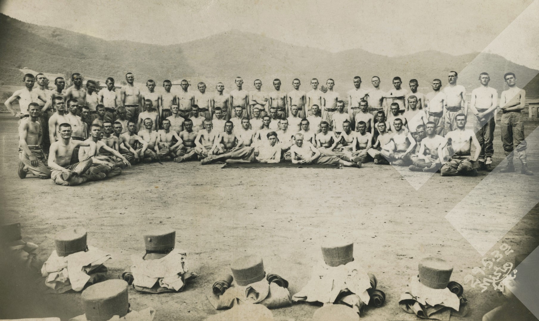 Misto Cici, 1932, Trupa të Ushtrisë Mbretërore pozojnë pas stërvitjes, print në letër, 9 x 14 cm.