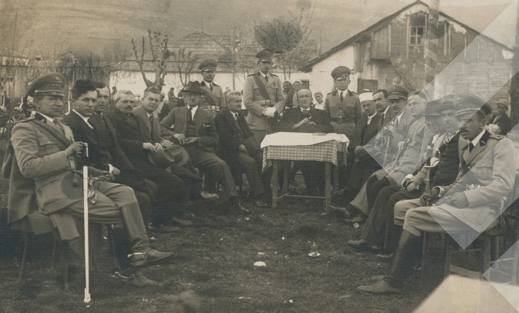 I panjohur, rreth 1935, Një takim i strukturave shtetërore në Veri të Shqipërisë, print në letër, 8.5 x 13.5 cm.
