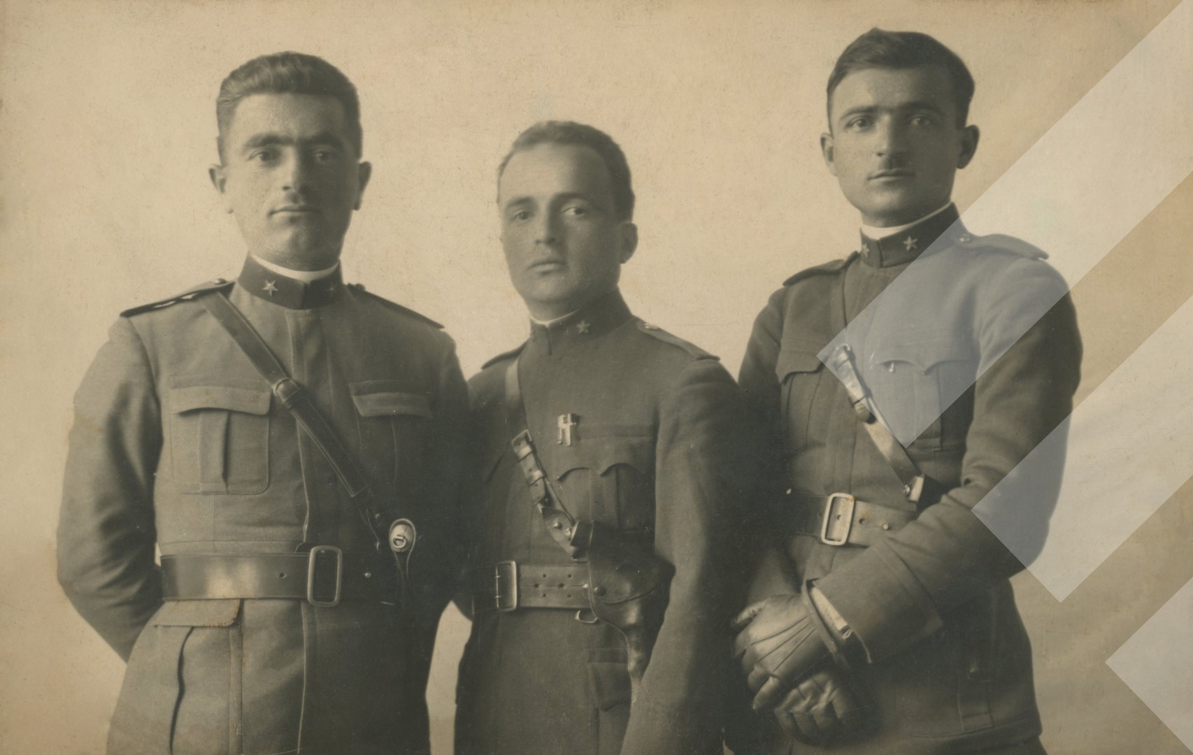 Otello Renzoni, rreth 1930-1935, Ushtarakë në pozë, print në letër, 9 x 14 cm.