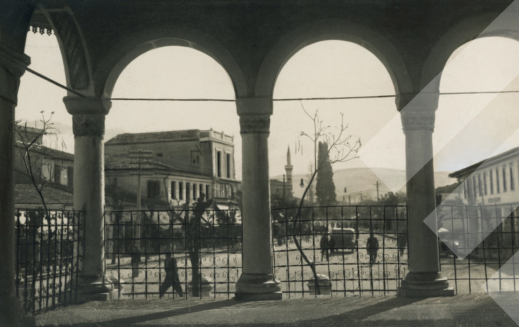 Otello Renzoni, rreth 1930-1935, Pamje e Tiranës nga portiku i xhamisë së Ethem Beut, print në letër, 9 x 14 cm.