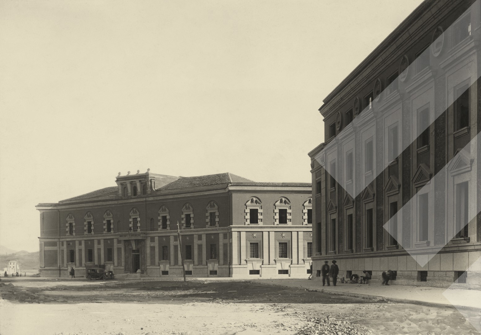 Otello Renzoni, Pamje nga kompleksi i ministrive të sapondërtuara në Tiranë. Godina e Ministrisë së Punëve të Brendshme, 17 gusht 1931, print në letër, 12 x 17 cm.