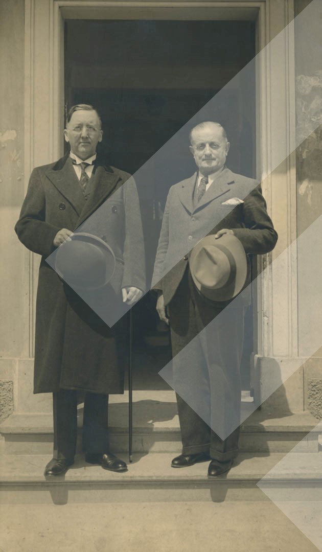 Studio Vasari, Ali Asllani, kryetari i Bashkisë së Vlorës, me ambasadorin amerikan në Shqipëri, Hugh Gladney Grant, rreth 1937, print në letër, 15 x 24 cm.