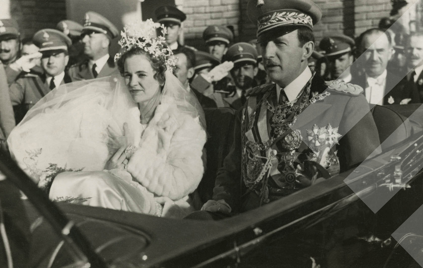 Foto Dajti, 1938,, Çifti mbretëror në makinë,, print në letër, 9 x 14 cm.