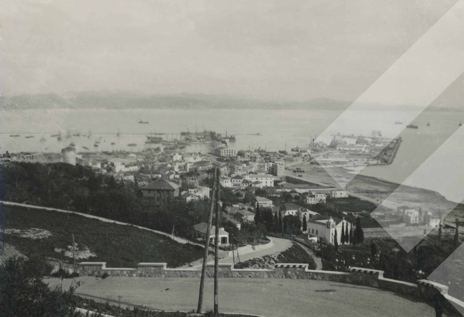 I panjohur, 1939, Pamje e Durrësit nga vila mbretërore, print në letër, 6 x 9 cm.