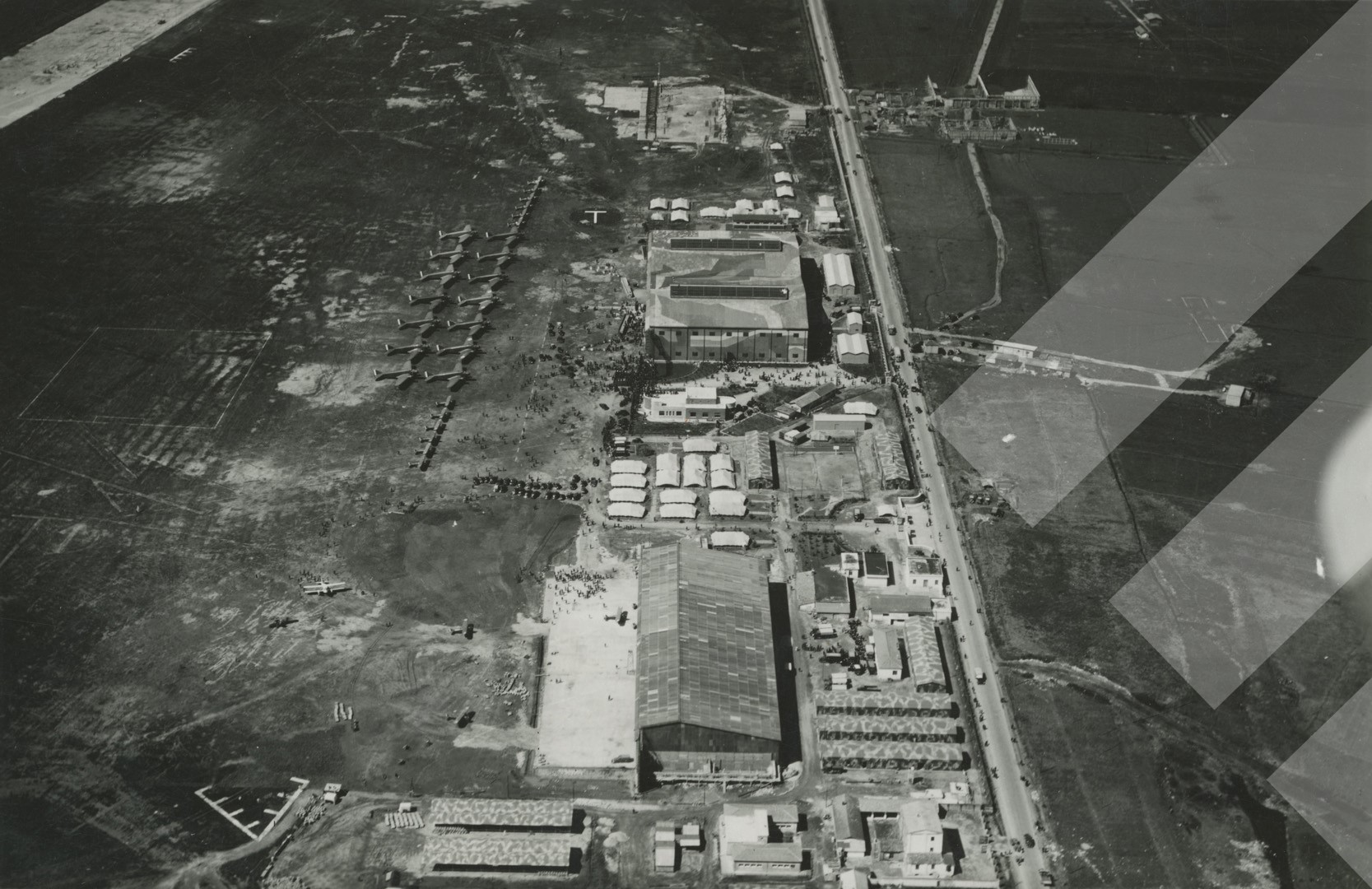 I panjohur, 1940, Pamje ajrore e aerodromit të Tiranës (Laprakë), print në letër, 9 x 14 cm.