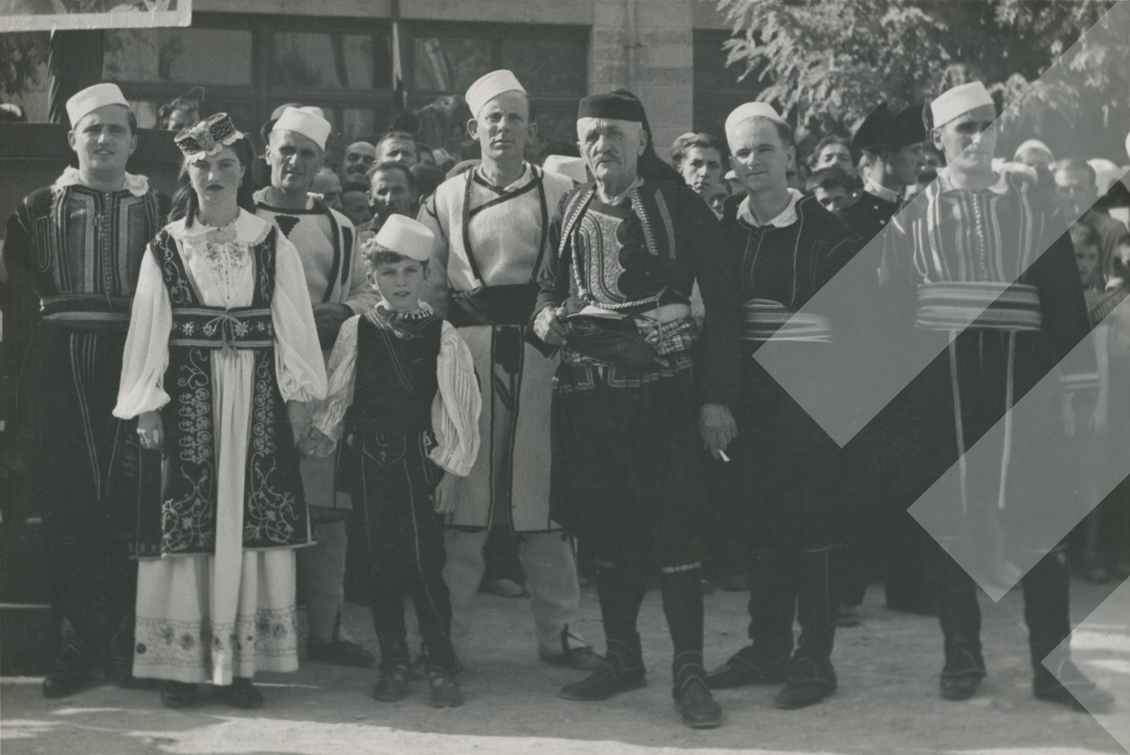 Shan Pici, 1940, Shodranë me veshje kombëtare me rastin e vizitë së Galeazzo Ciano në Shkodër, print në letër, 13 x 18 cm.