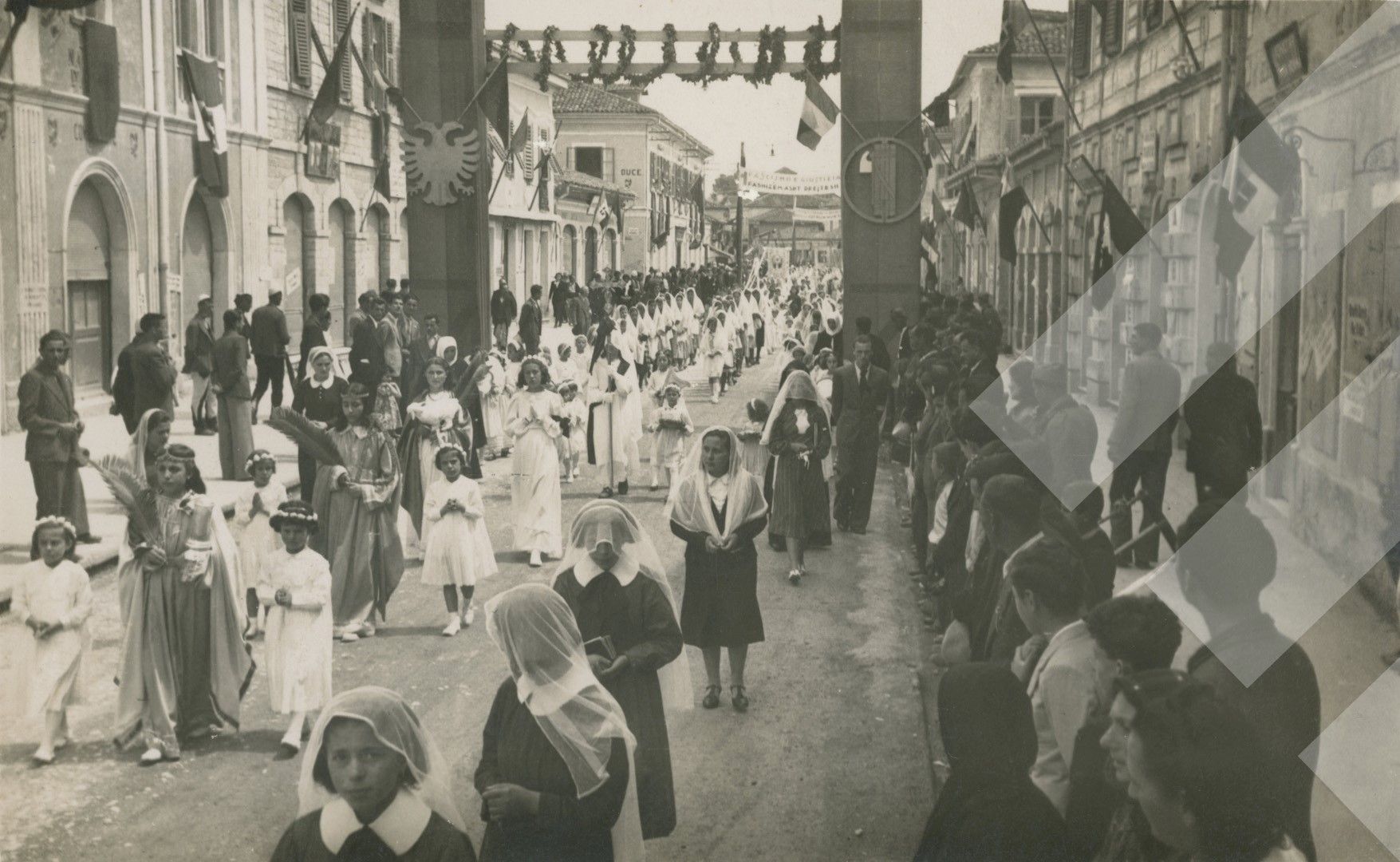 Shan Pici, 1940, Procesion fetar me rastin e vizitës së Galeazzo Ciano-s në Shkodër, print në letër, 9 x 14 cm.