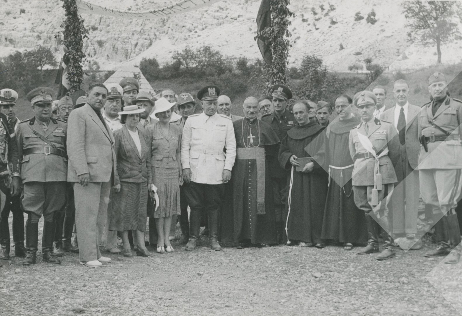 I panjohur, 1940, Fracesko Jakomoni dhe Dona Maja me klerik dhe hierarkë Shqiptarë dhe italianë, print në letër, 9 x 14 cm.