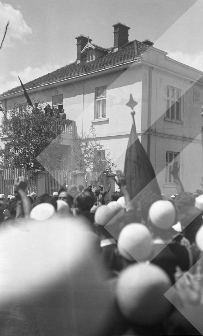 I panjohur, 1941, Guvernatori shqiptar në kryeqytetin e Kosovës, Prizren pritet me entuziazëm nga banorët, gusht 1941, negativ, 7 x 11 cm.
