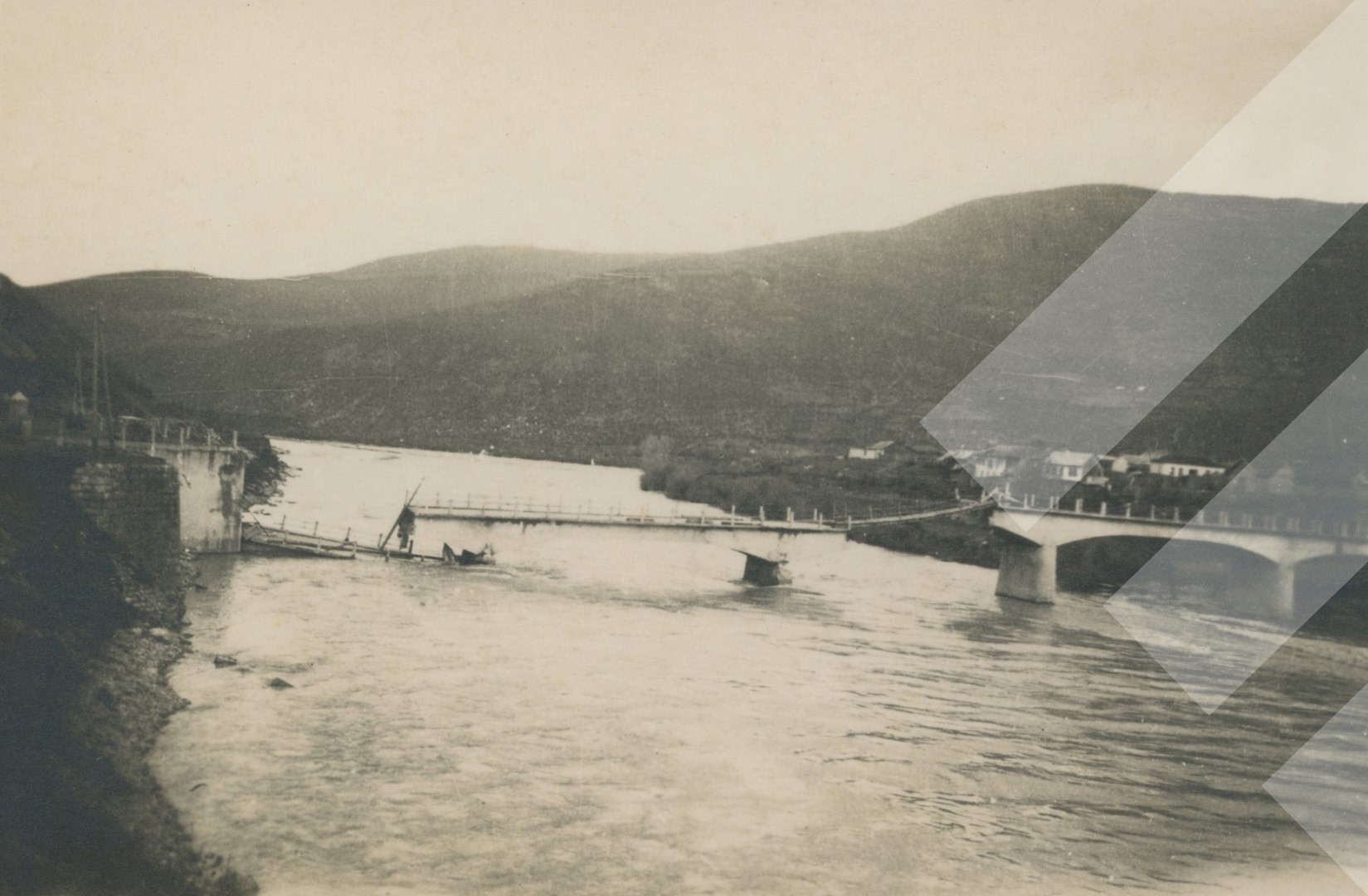 I panjohur, 1941, Ura e dëmtuar mbi lumin Drin, Kukës, print në letër, 6 x 9 cm.
