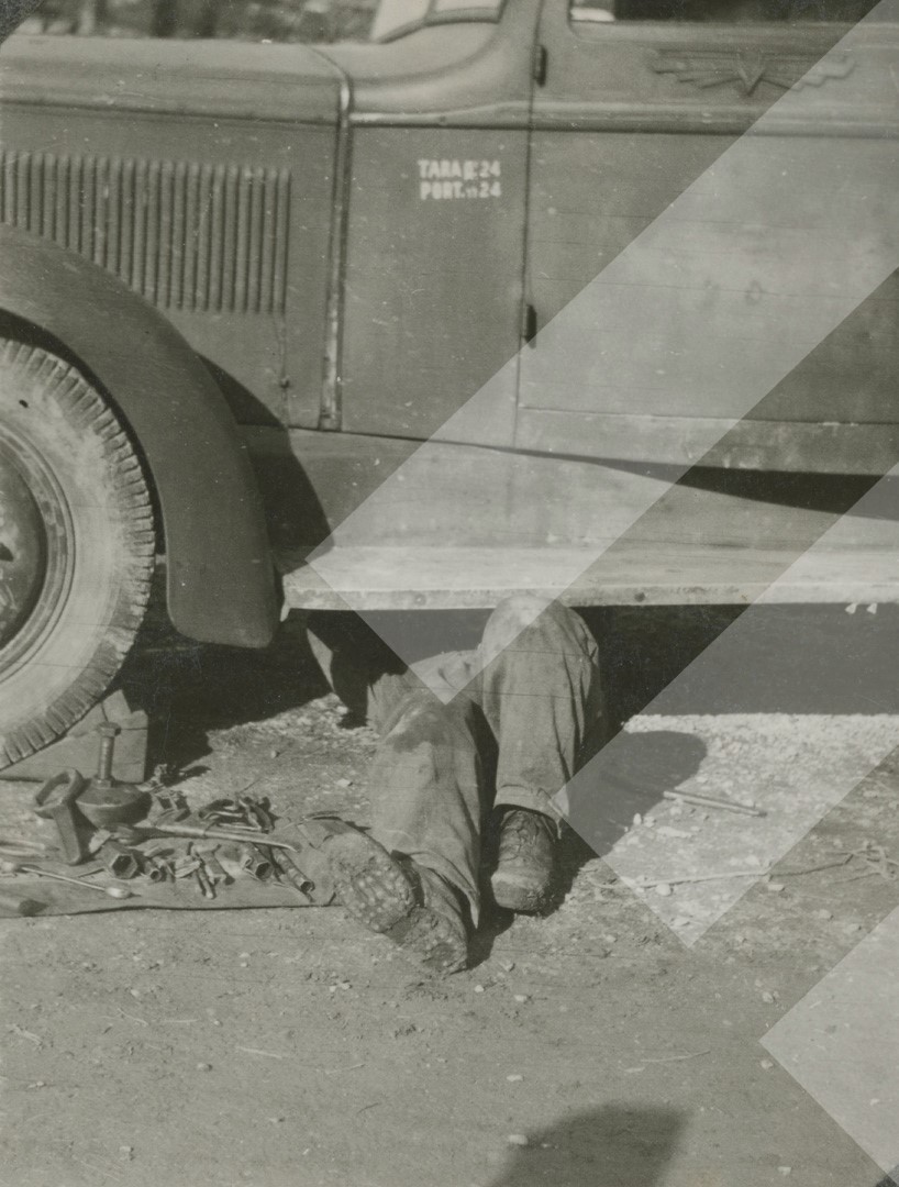 I panjohur , "", rreth 1940-1941 , , Duke riparuar kamionin , , print në letër , 4 x 6 cm
