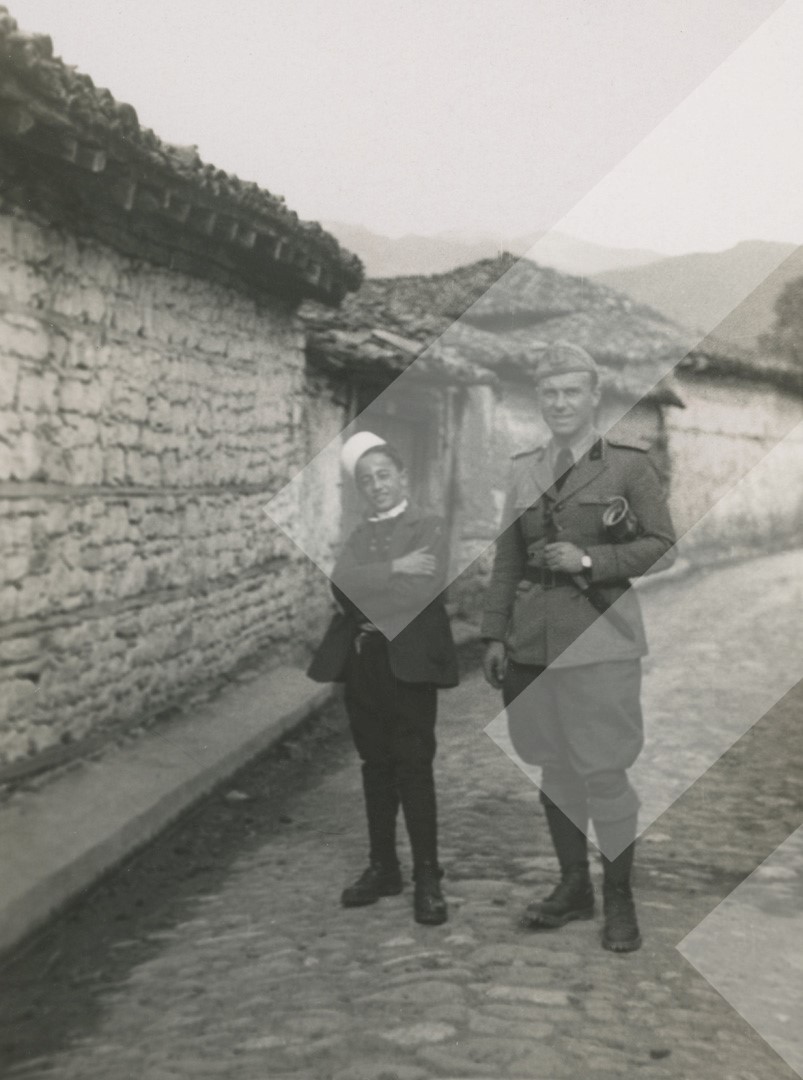 I panjohur , "", 1939 , , I ri shqiptar duke pozuar me nje ushtarak italian, , print në letër , 9 x 14 cm