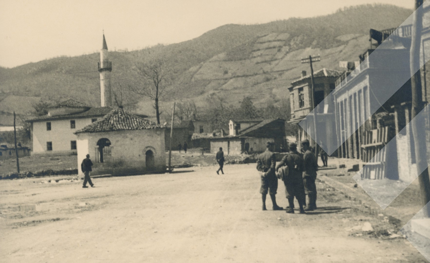 I panjohur , "", 1940-1942 , , Patrullë italiane në rrugët e Pogradecit, , print në letër , 9 x 14 cm