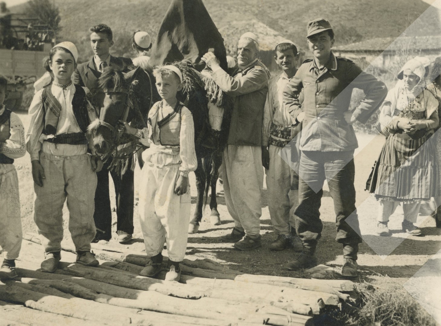 I panjohur , "", 1944 , , Ushtar gjerman duke pozuar me krushqit dhe nusen me duvak, Zadrimë , , print në letër , 7 x 10 cm