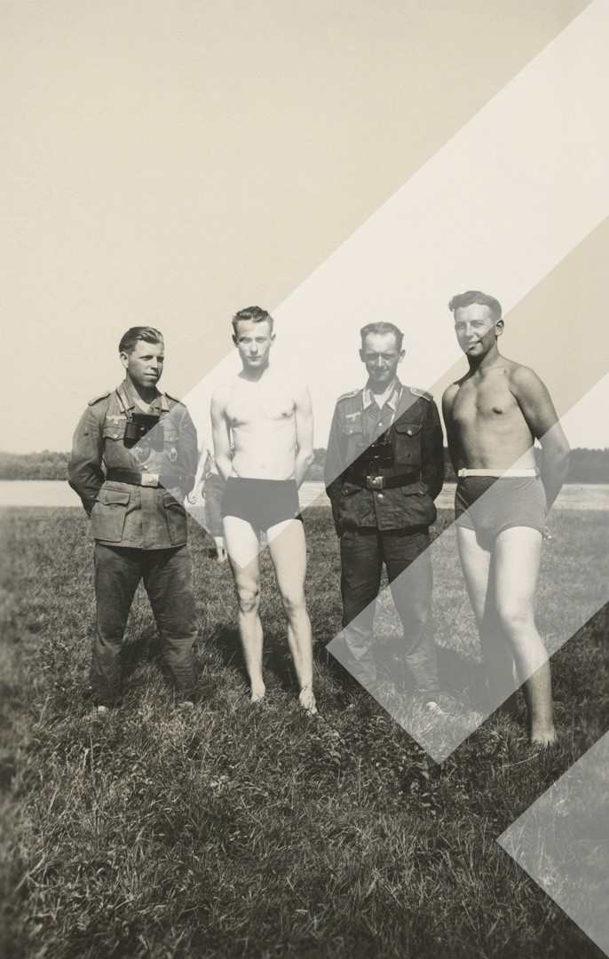 I panjohur, 1944, Ushtarë gjermanë në poligonin e qitjes në Tale të Lezhës,, print në letër, 5 x 8 cm.