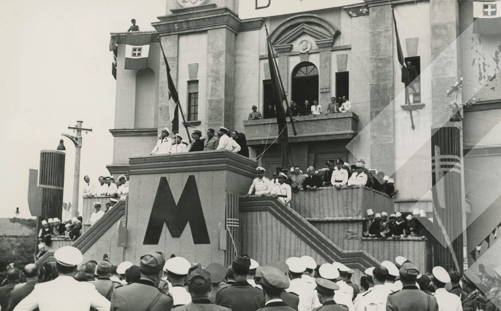 I panjohur, 1939, Fjalimi i Kontit Ciano në një tubim para Bashkisë, gjatë vizitës së tij në Tiranë, print në letër, 12 x 18 cm.