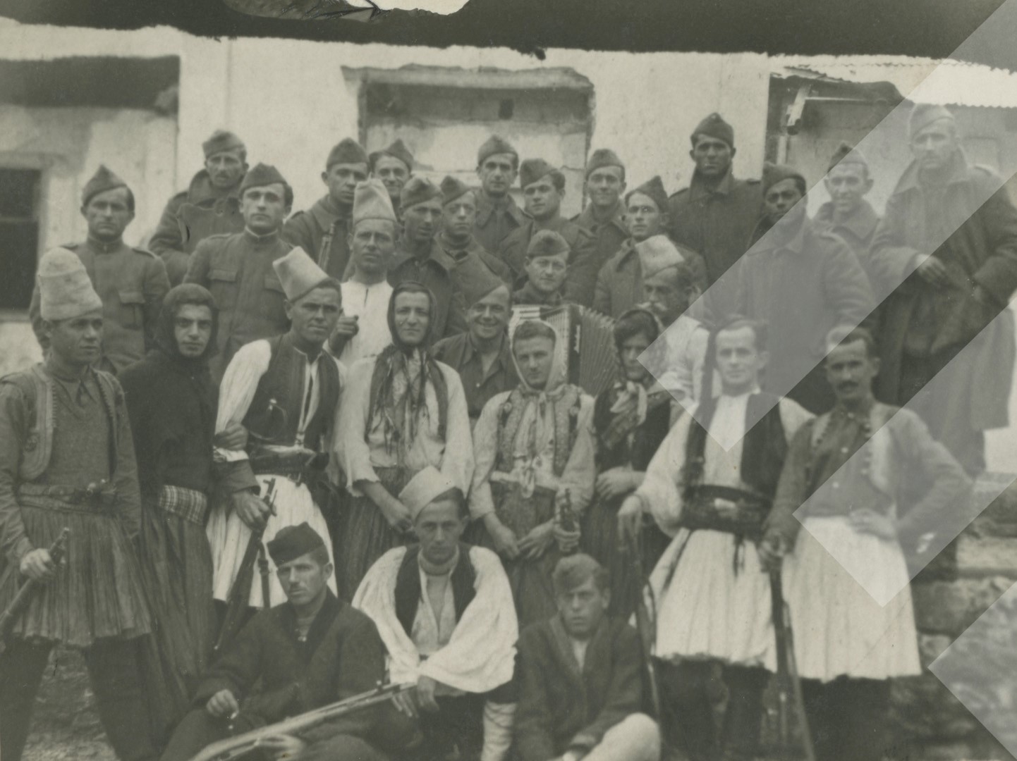I panjohur, 1944, Partizanë pas improvizimit të një shfaqje teatrale, print në letër, 7 x 9 cm.