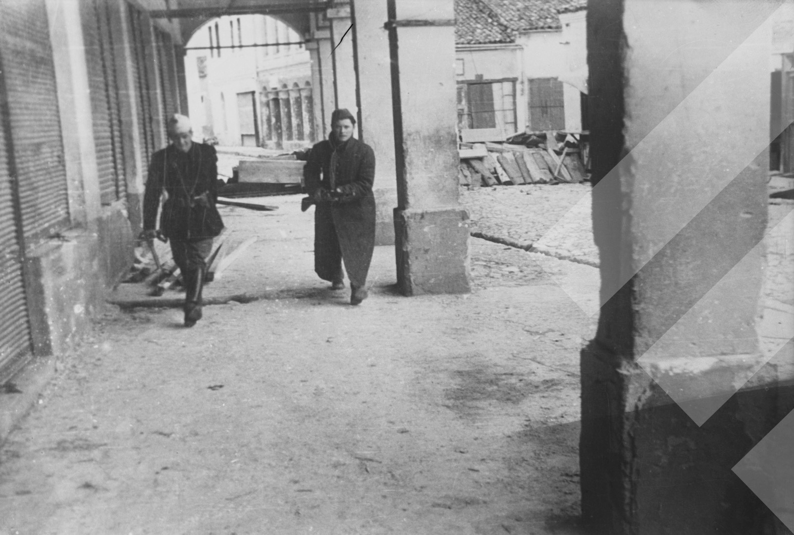 I panjohur, 1944, Partizanë gjatë çlirimit të Tiranës, pllakë xhami, 13 x 18 cm.