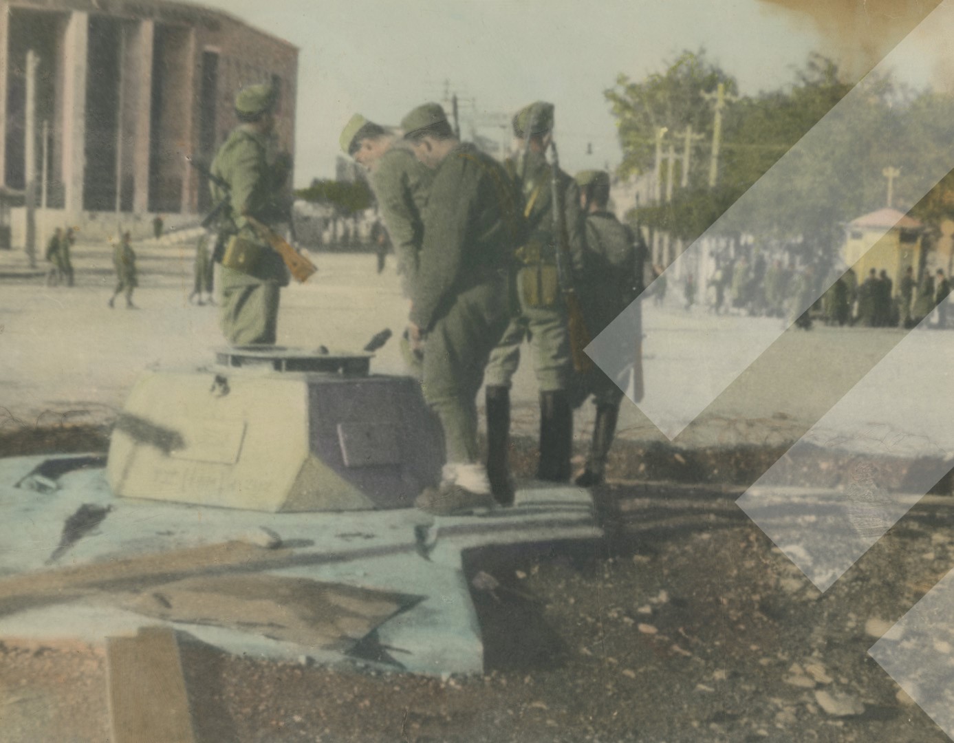 Vasil Ristani, 1944, Partizanë mbi një bunker gjerman në Tiranë, print në letër, 20 x 25 cm.