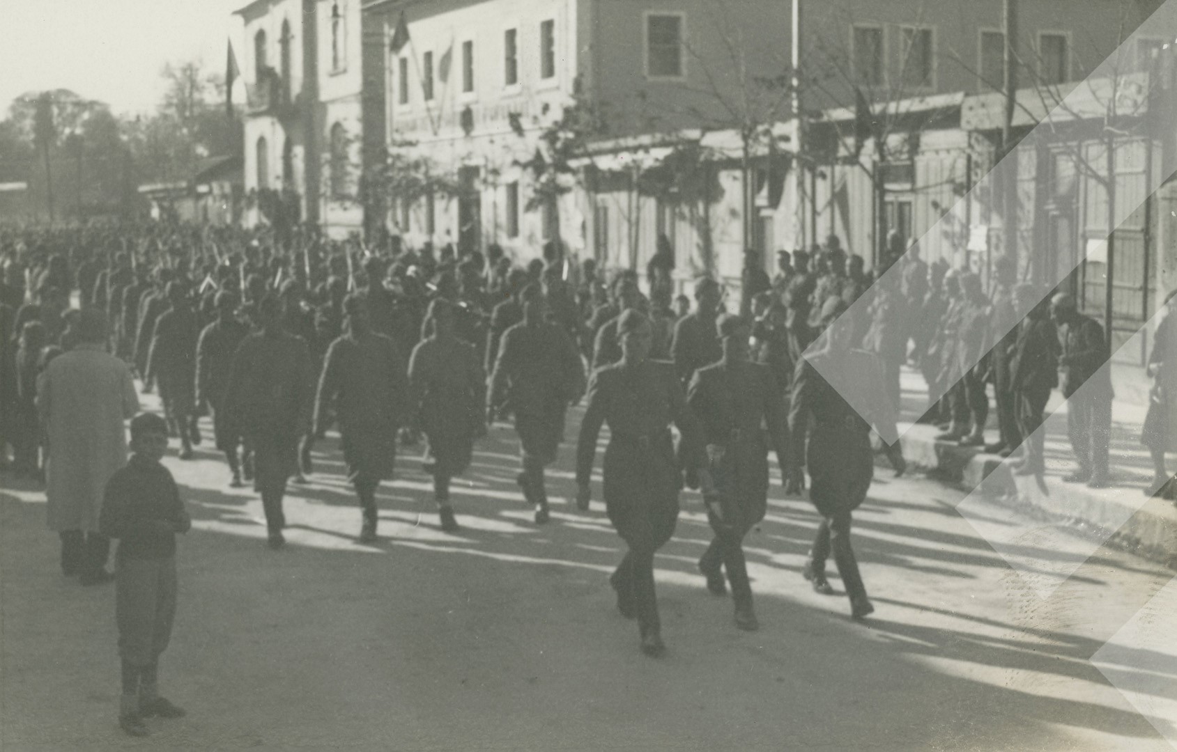 I panjohur, 1944, Parakalim partizan në Shkodër, print në letër, 9 x 14 cm.