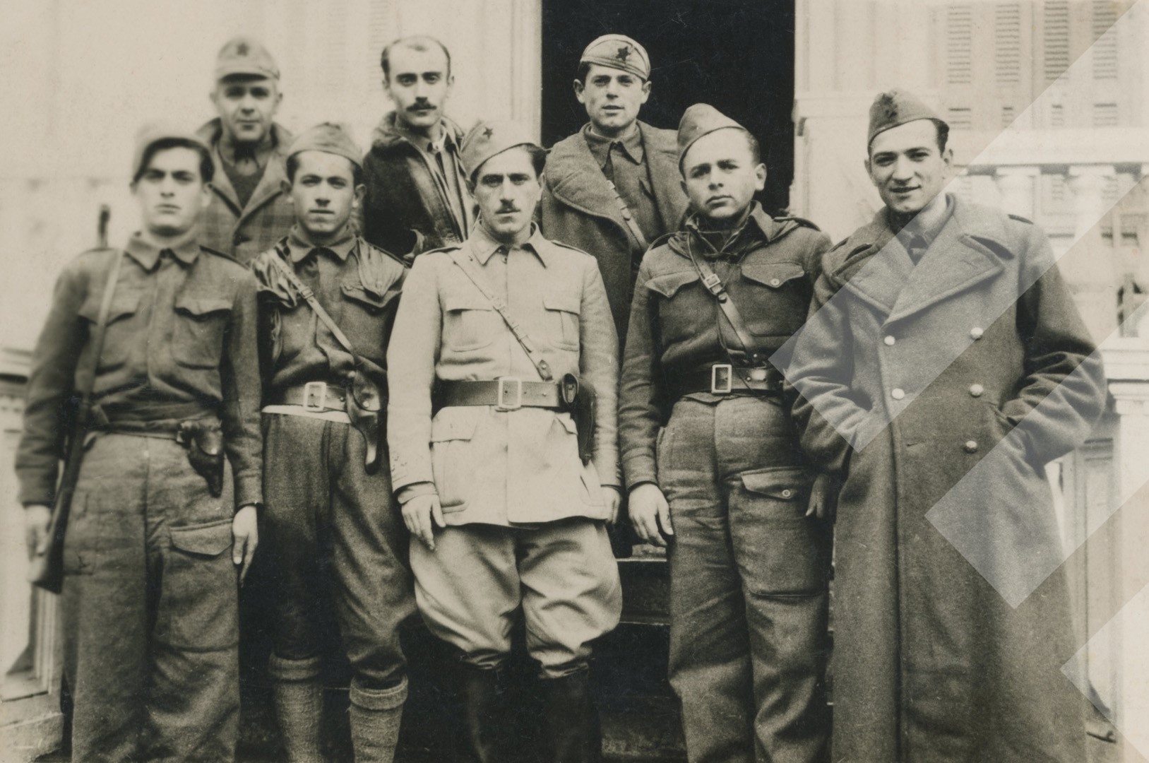 I panjohur, 1945, Partizanë në pozë, print në letër, 6 x 9 cm.