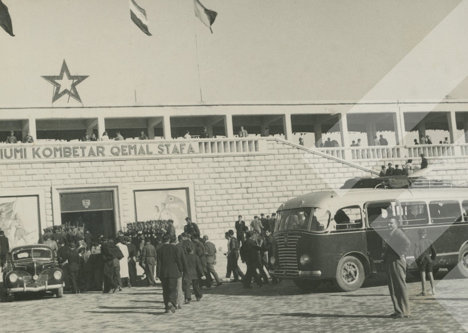 I panjohur, 1946, Para stadiumit gjatë zhvillimit të "Lojrave Ballkanike", Tiranë, print në letër, 9 x 12 cm.