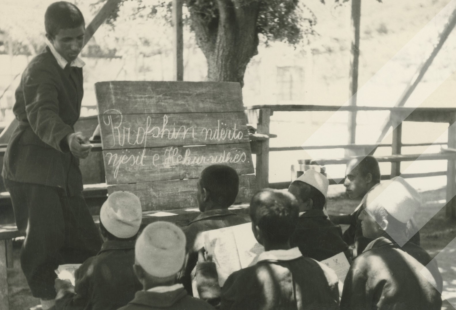 I panjohur , "", 1947 , , Ora e mësimit kundër analfabetizmit , , print në letër , 9 x 14 cm