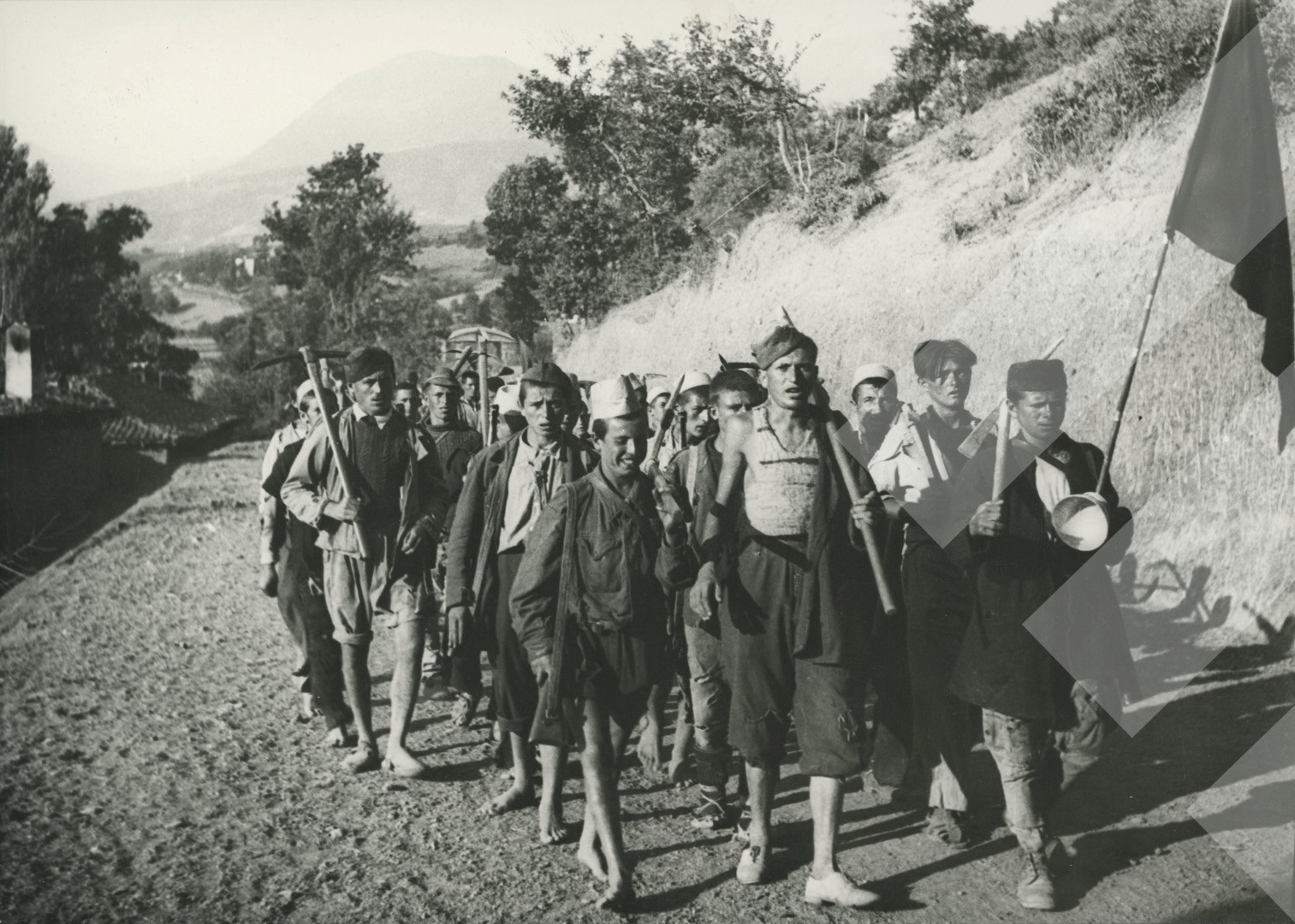 I panjohur , "", rreth 1950 , , Marshimi i aksionistëve, , print në letër , 13 x 18 cm