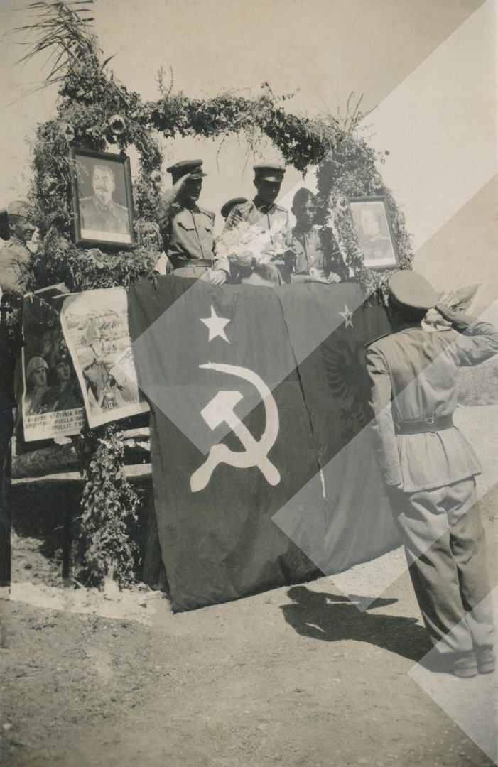 I panjohur , "", 1954 , , Nëntoger Selam Tahiraj nderon eprorët në ditën e ushtrisë , , print në letër , 6 x 9 cm