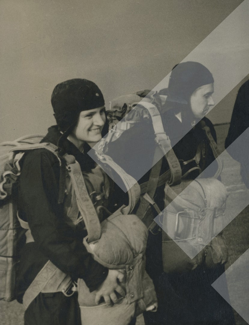 I panjohur , "", 1968 , , Hedhja e parë me parashutë nga një grup vajzash, , print në letër , 8 x 11 cm