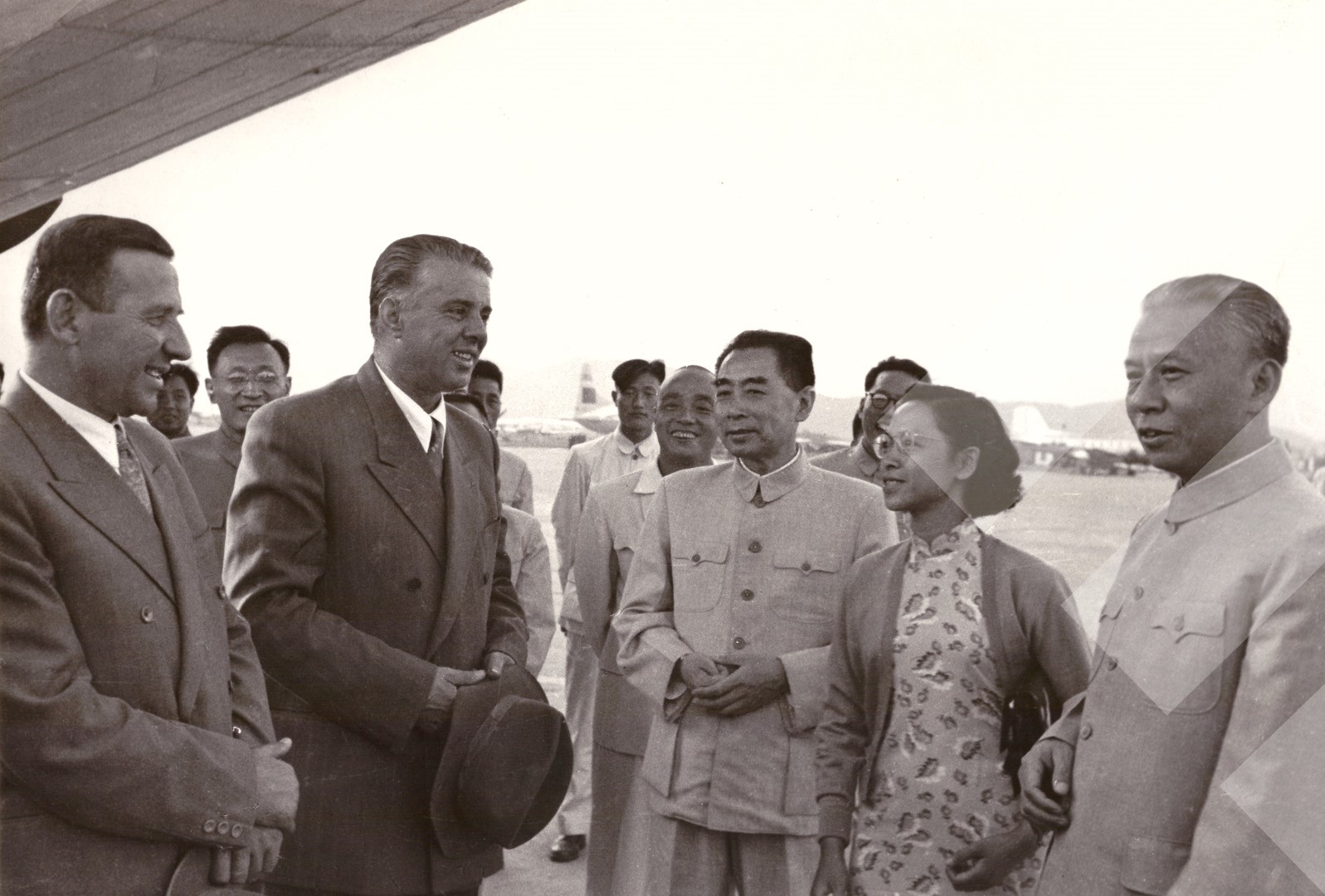 I panjohur , "", 1965 , , Enver Hoxha dhe Mehmet Shehu presin delegacionin e lartë kinez kryesuar nga kryeministri i Republikës Popullore të Kinës, Çu En Lai, , print në letër , 6 x 9 cm