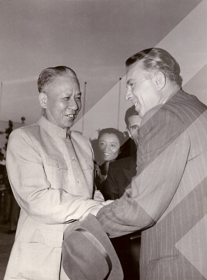 I panjohur , "", 1965 , , Shtrëngim duarsh mes Enver Hoxhës dhe një anëtari të lartë të delegacionit kinez , , print në letër , 6 x 9 cm