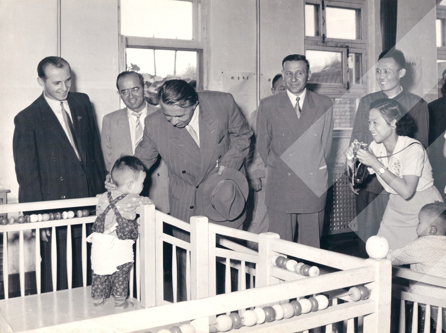 I panjohur , "", 1956 , , Enver Hoxha dhe Mehmet Shehu vizitojnë një kopësht fëmijësh, Kinë , , print në letër , 6 x 9 cm