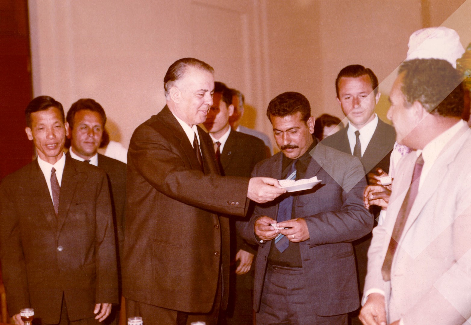 I panjohur , "", rreth 1970-1975 , , Enver Hoxha i uron mirëseardhjen delegacioneve të partive simotra, Tiranë , , print në letër , 11 x 15 cm