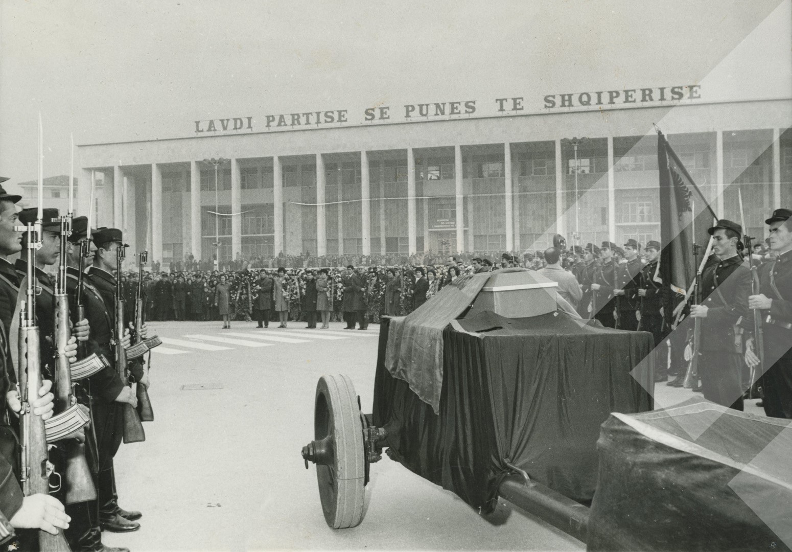 I panjohur , "", 1971 , , Ceremonia shtetërore e zhvendosjes së eshtrave të Dëshmorëve të Atdheut për në varrezën e re në kodrat e Tiranës, , print në letër , 13 x 18 cm