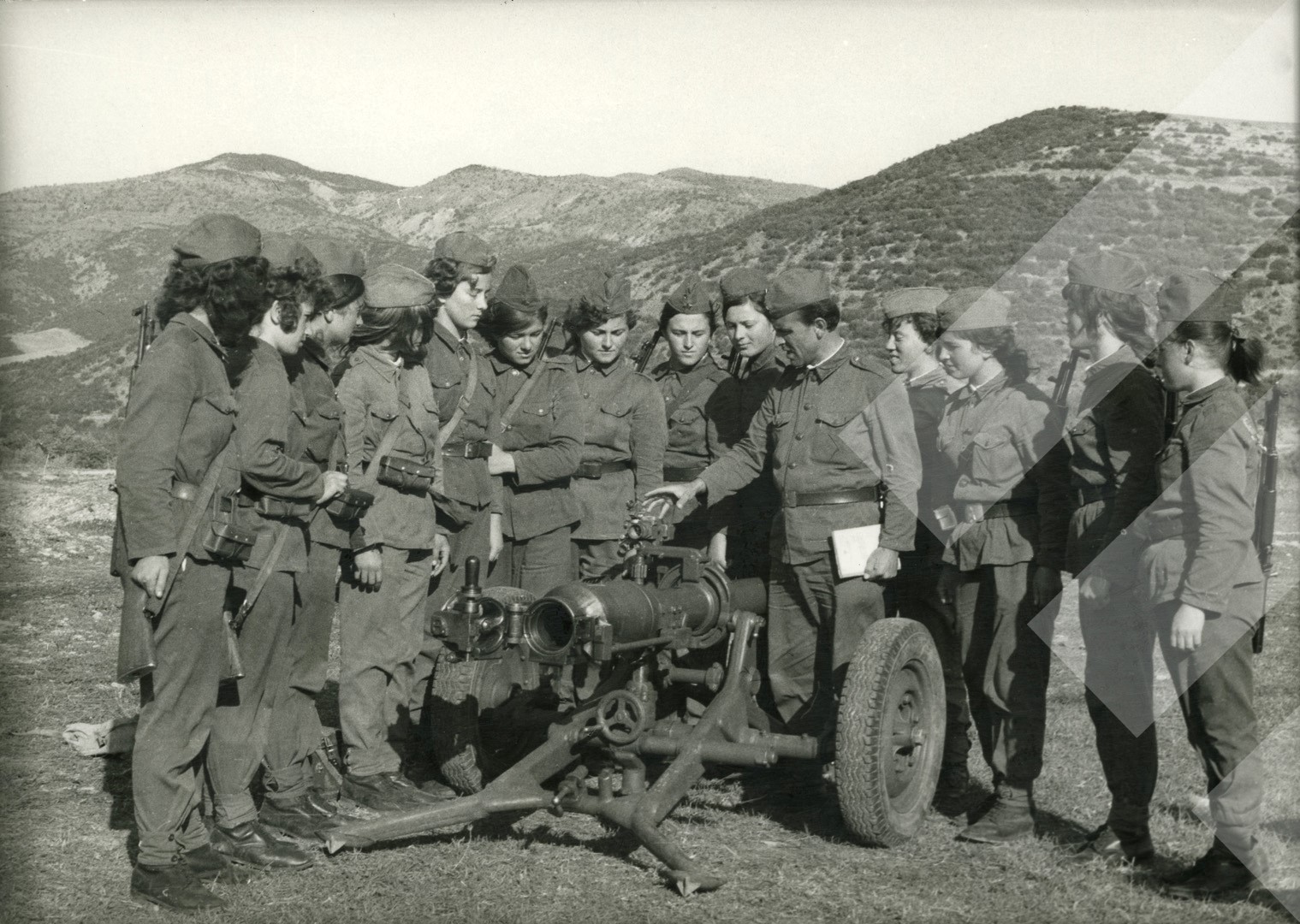 I panjohur 1978, Të reja në stërvitje ushtarake, Tepelenë., print në letër, 13 x 18 cm.