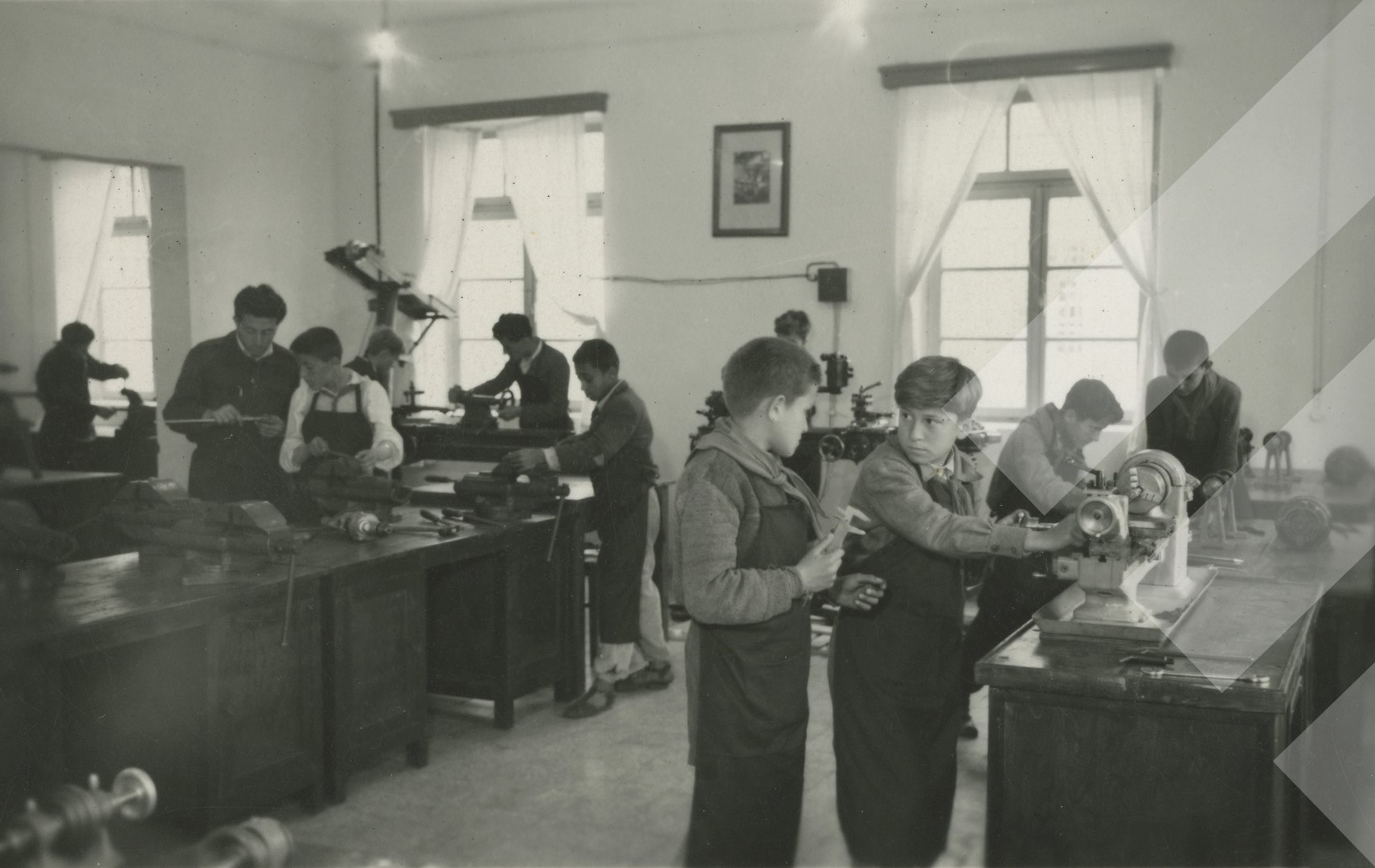 I panjohur , "", rreth 1970 , , Nxënës gjatë orës së dru-metalit, , print në letër , 6 x 9 cm