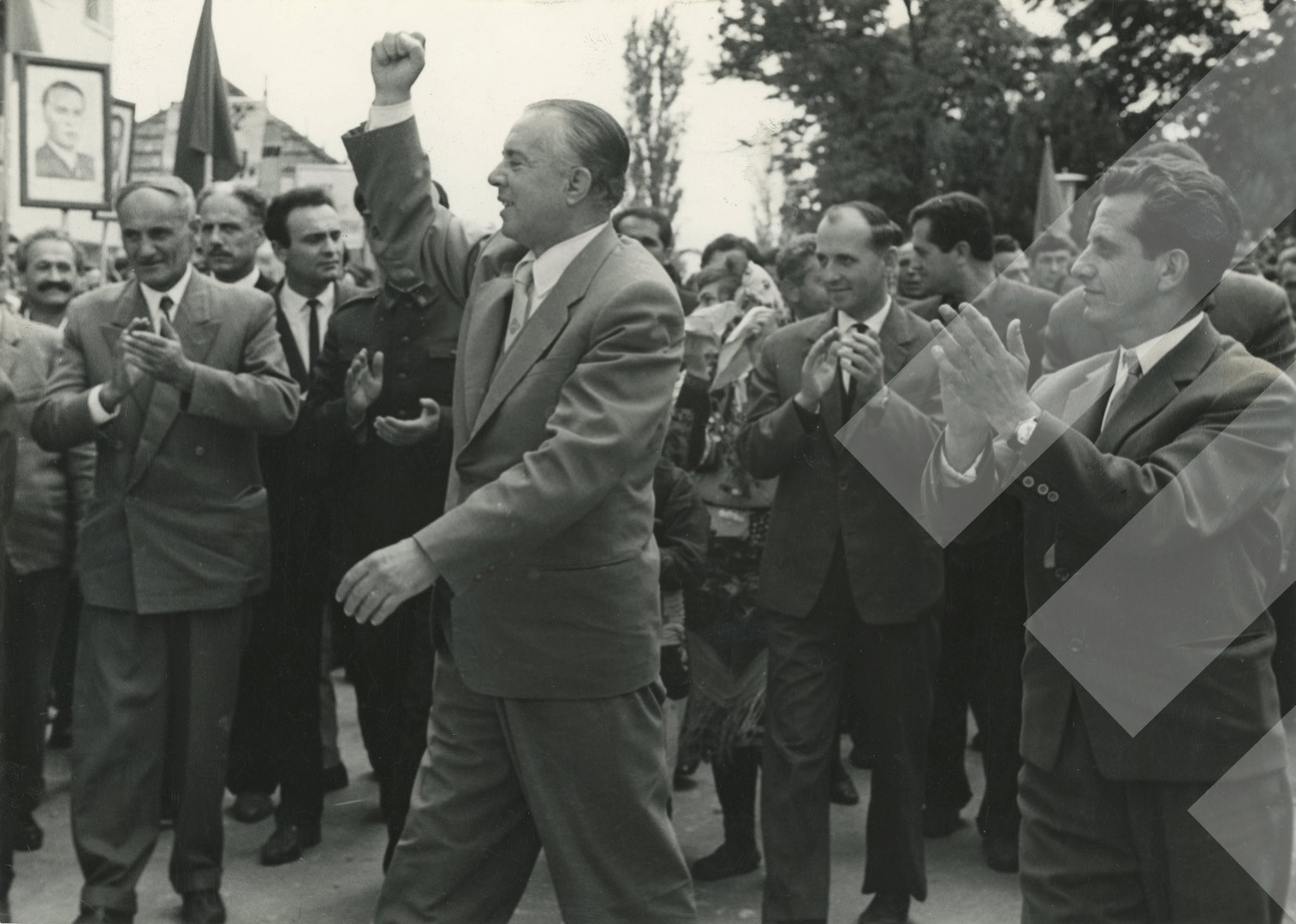 I panjohur , "", rreth 1970 , , Enver Hoxha dhe udhëheqës të tjerë komunistë gjatë një aktiviteti, , print në letër , 13 x 18 cm