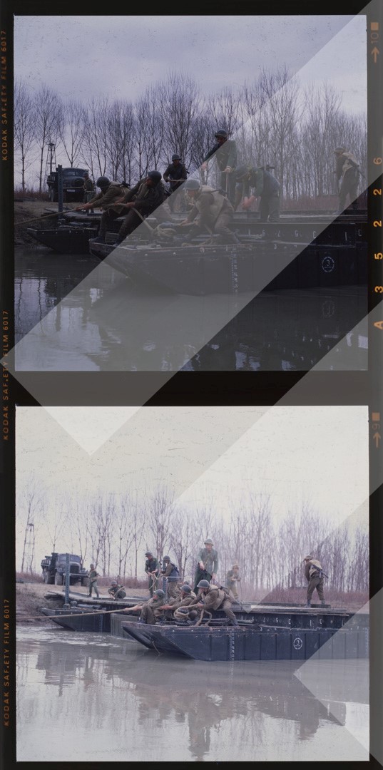 I panjohur, 1984, Ushtarë të repartit xhenier, diapozitiv, 6 x 6 cm.