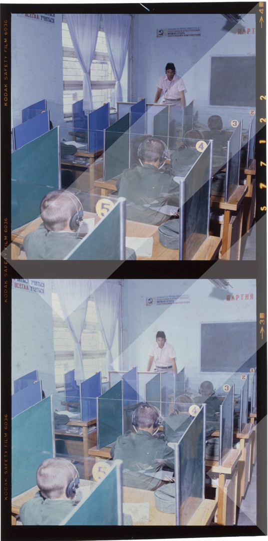 I panjohur, 1984, Ushtarë gjatë orës së gjuhës ruse, diapozitiv, 6 x 6 cm.