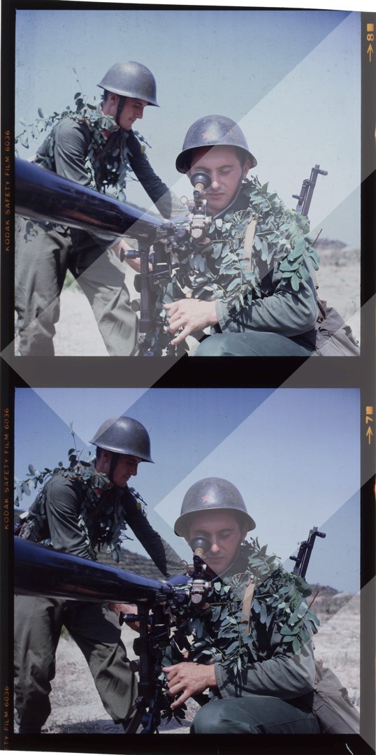 I panjohur, 1984, Artilierë në stërvitje, diapozitiv, 6 x 6 cm.